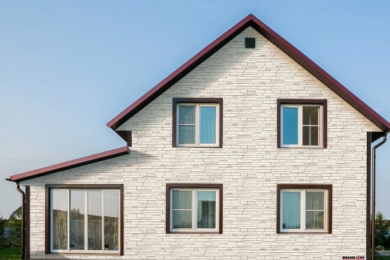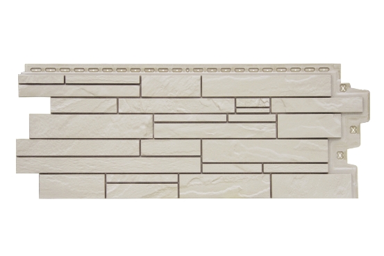 Фасадная панель GL Скала молочный — предтавляет собой пиленые плоские камни, которые воплощают стиль шале горных пород, отлично сочетаются со вставками из дерева.