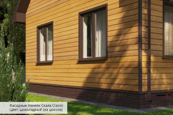 Фасадная панель GL Скала шоколад — предтавляет собой пиленые плоские камни, которые воплощают стиль шале горных пород, отлично сочетаются со вставками из дерева.