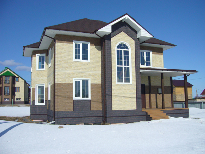 Фасадная панель Мелкий камень (Stein) Осенний лес имитируют самый востребованный натуральный отделочный материал — камень-песчаник. Характеристики сайдинга Döcke из этой коллекции аналогичны показателям природного песчаника: устойчивость к низким температурам и воздействию влаги, стойкость к механическим повреждениям.