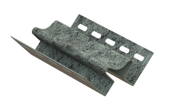 Внутренний угол Ю-Пласт Камень Изумрудный может использоваться для стыковки сайдинг-панелей в углах здания, а также в месте примыкания крыши и стен. Этот отделочный материал устойчив к ржавчине, талой и дождевой воде, не выгорает на солнце.