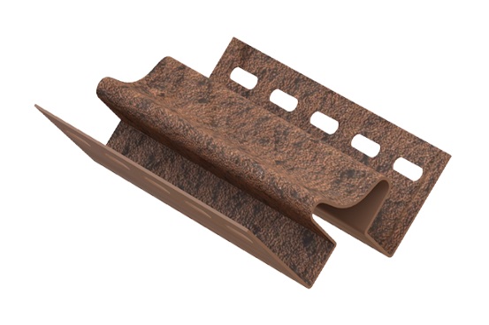 Внутренний угол Ю-Пласт Камень Жженый может использоваться для стыковки сайдинг-панелей в углах здания, а также в месте примыкания крыши и стен. Этот отделочный материал устойчив к ржавчине, талой и дождевой воде, не выгорает на солнце.