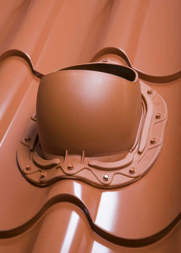 Проходной элемент для металлочерепицы с профилем Monterrey (ширина волны ≈ 183,3 мм, длина профиля min 350 мм, высота профиля ≈ 39 мм). Комплект: MUOTOKATE проходной элемент, кольцо гидрозатвора, инструкция по монтажу кольца гидрозатвора, MUOTOKATE шаблон, герметик на безуксусной основе и набор крепежа. Устанавливается при монтаже и на готовую кровлю..