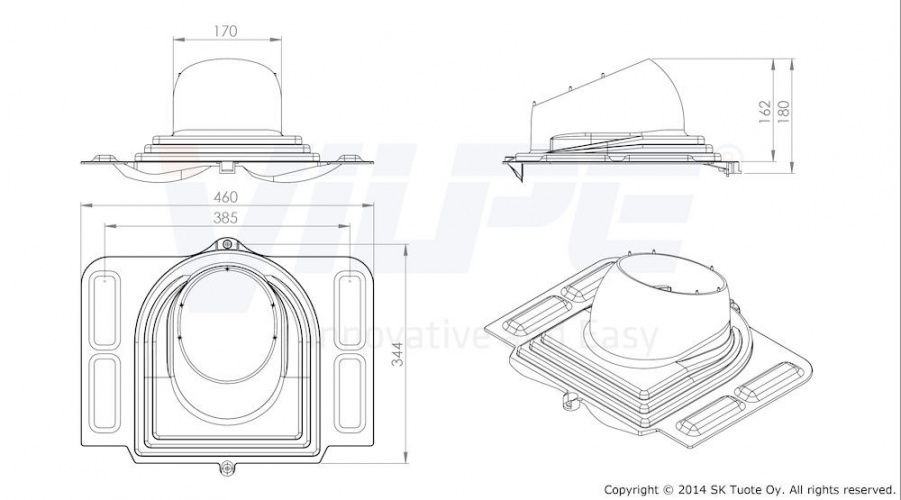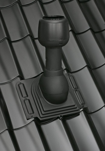 Проходной элемент для металлочерепицы с высотой профиля до 38 мм. Комплект: проходной элемент, резиновый уплотнитель, кольцо гидрозатвора, герметик на безуксусной основе, шаблон, монтажная инструкция, 2 набора крепежа. Устанавливается при монтаже и на готовую кровлю.