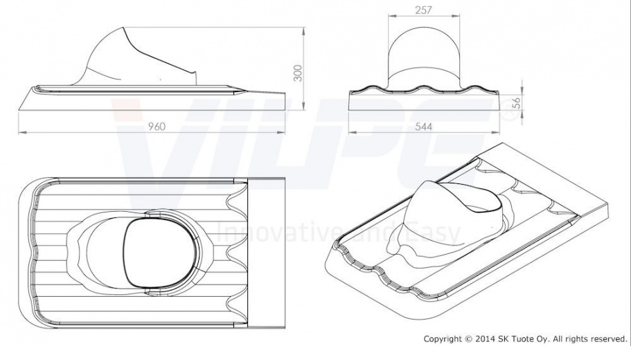 Проходной элемент для металлочерепицы независимо от профиля и всех видов цементно-песчаной и керамической черепицы. Комплект: XL -проходной элемент, XL -кольцо гидрозатвора, уплотнительная лента (3 шт.), монтажная инструкция и набор крепежа. Устанавливается при монтаже и на готовую кровлю.