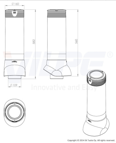 Вентиляционный выход канализационного стояка изолированный высотой 500 мм. Комплект: труба и набор крепежа. Для монтажа отдельно заказывается проходной элемент по типу кровельного материала.