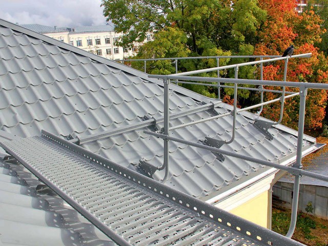 Переходные мостики Borge служат для безопасного перемещения по скатным кровлям. Собраны из секций длиной 1,5 м с бортиками и поперечными противоскользящими ребрами жесткости.