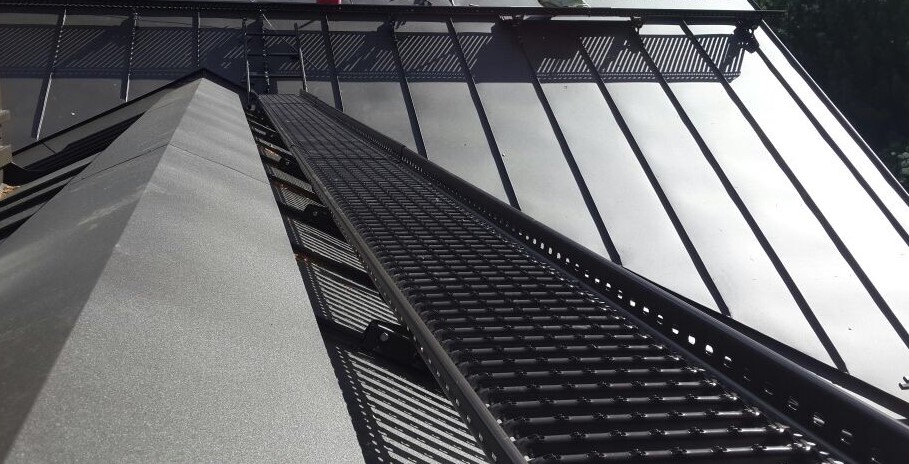 Переходные мостики служат для безопасного перемещения по скатным кровлям. Собраны из секций длиной 3 м с бортиками и поперечными противоскользящими ребрами жесткости.