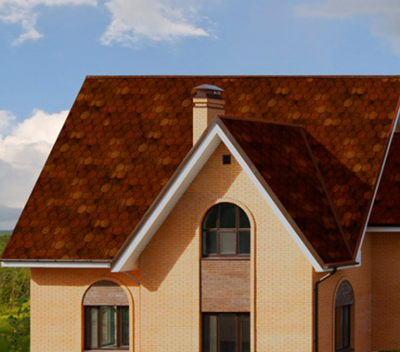 Особое место среди продукции компании RUFLEX занимает коллекция черепицы ORNAMI. Главное отличие данного кровельного материала заключается в форме "лепестков" гонта. Внешне они похожи на бобровый хвост, поскольку имеют полукруглую форму. Естественный терракотовый оттенок этой черепицы, в сочетании с необычной и редкой формой, создают на кровле поистине уникальный орнамент.