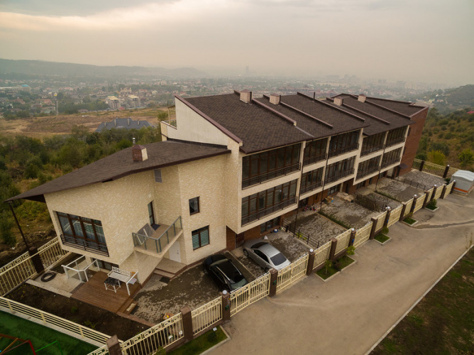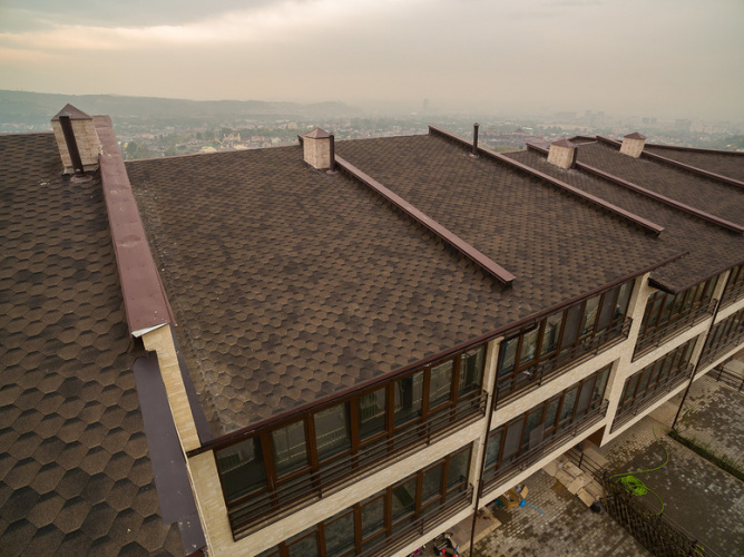 Традиционная для однослойной черепицы форма нарезки, напоминающая мозаику, придётся по вкусу многим домовладельцам.
