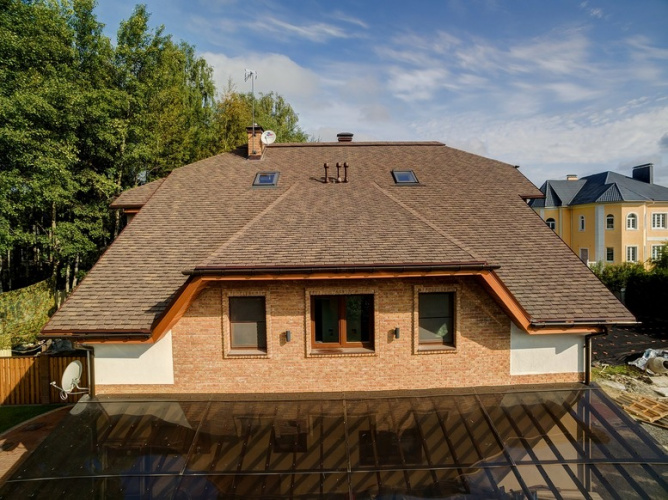 Трёхслойная черепица – эксклюзивный материал, сверхпрочный и невероятно красивый. Форма гонта, напоминая кровельную каменную плитку античных времен, создаёт неповторимый эффект. «Тяжеловес» в мире кровли имеет беспрецедентный гарантийный срок службы – 60 лет! Теперь вы можете передавать качественную кровлю по наследству!