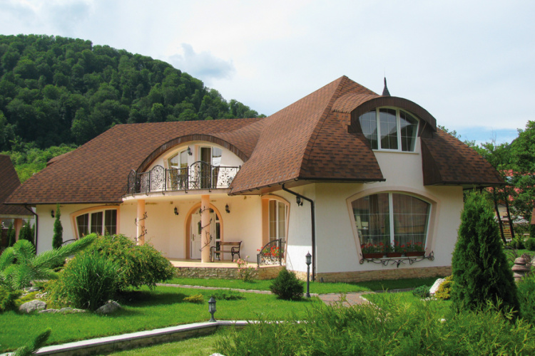 Подобрать кровлю под самый незаурядный дизайнерский замысел позволит широчайшая палитра выразительных цветов, открывающим красоту древесных пород во всём их многообразии. Оригинальная форма гонта, выгодно подчёркивает глубину оттенков, их переливы и контрастные акценты.