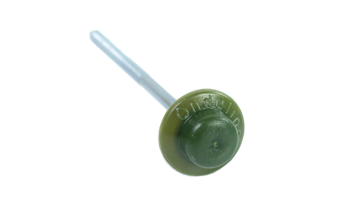 Кровельные гвозди для Черепицы Ондулин зеленого цвета, благодаря широким пластиковым шляпкам и кольцевому профилю стержня надежно фиксируют покрытие, защищают его от ветра и влаги.