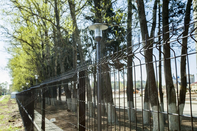 Ограждения 3D для частного сектора Панель изготовлена из стальных оцинкованных прутков толщиной 4 мм (Medium) . Перед покраской панель проходит 9 стадий подготовки поверхности, в том числе нанесение конверсионного слоя OXSILAN. Такой метод подготовки к покраске увеличивает коррозионную стойкость и срок службы изделия. Большее, по сравнению с изделиями других производителей, ребро жесткости обеспечивает увеличение прочности панели.
