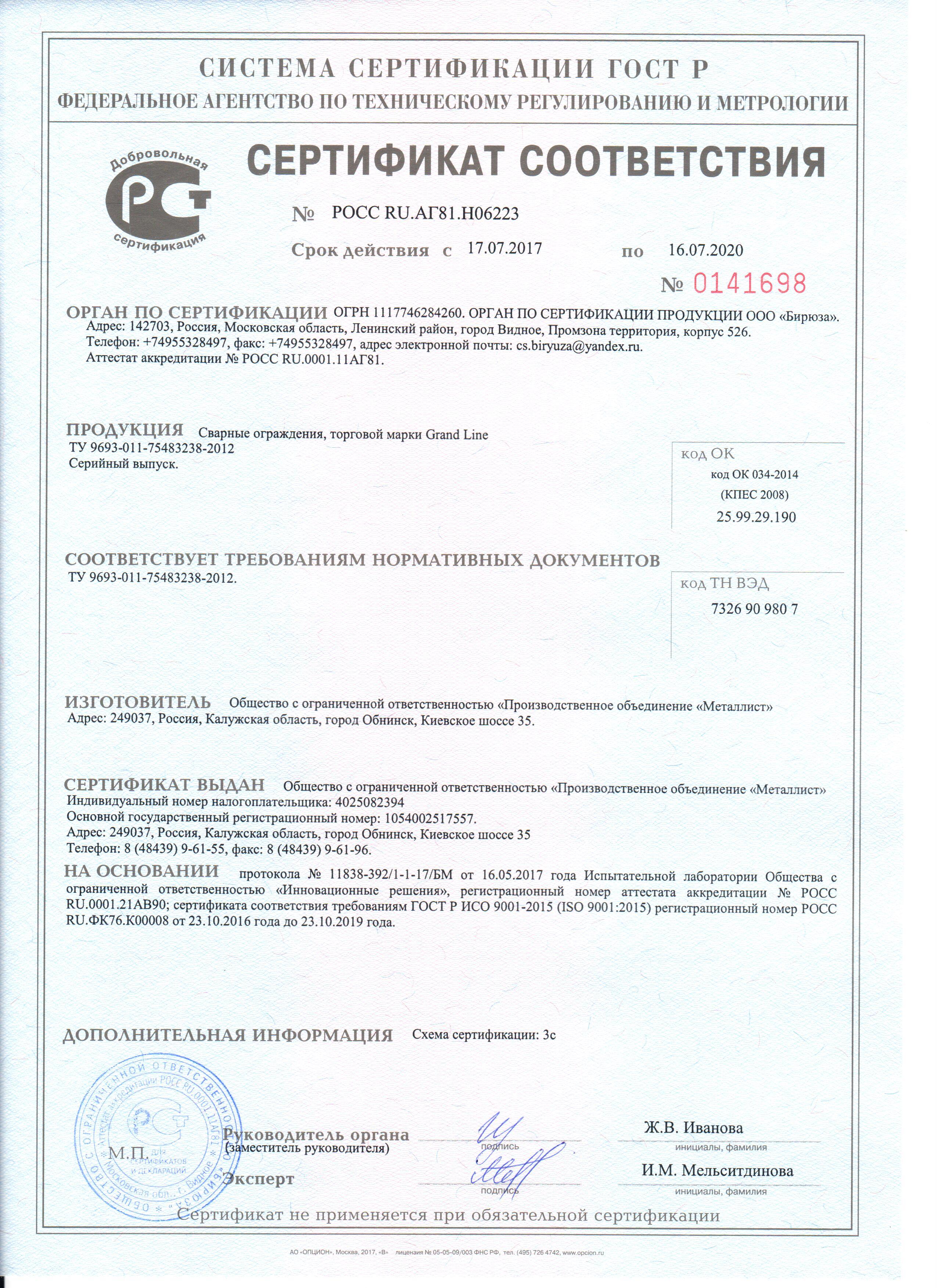 jpg, 1.32 MbОграждения GL Сертификат соответствия до 2020