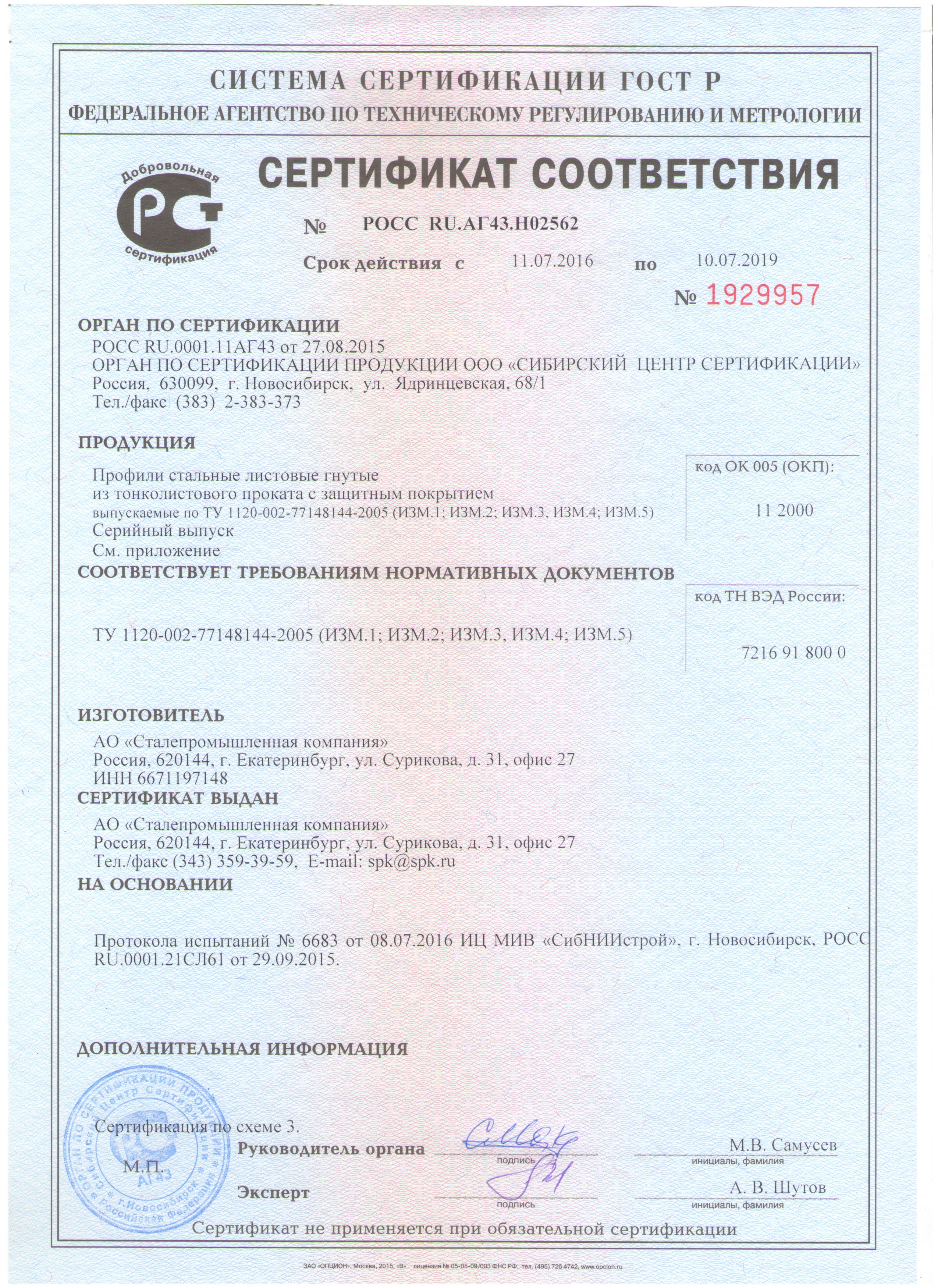 jpg, 1.68 MbПрофили стальные листовые гнутые Сталепромышленная компания Сертификат соответствия