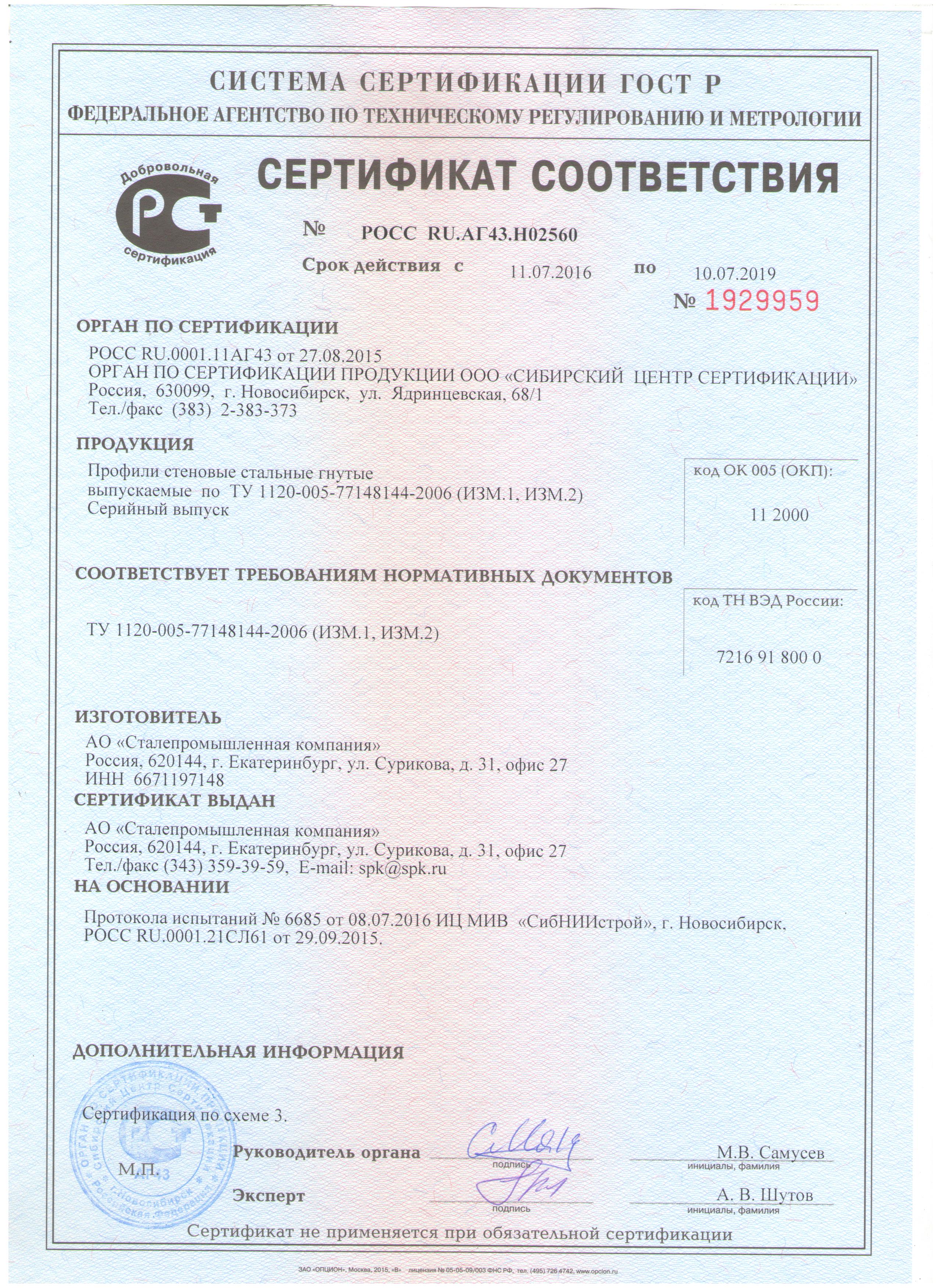 jpg, 1.66 MbПрофили стальные стеновые гнутые Сталепромышленная компания Сертификат соответствия
