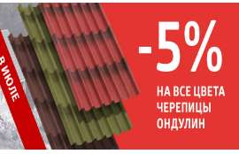 Акция на Черепицу Ондулин -5% весь октябрь на все цветаСовременная кровля по доступной цене! Только в октябре действует скидка на все цвета -5% Черепицы Ондулин. -